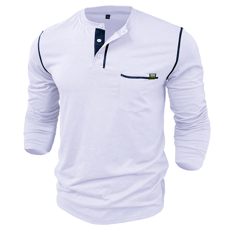 The tailored fit ensures a flattering and comfortable silhouette, while the patchwork detailing adds a unique twist to the classic solid color design. Available in six versatile shades — White, Dark Gray, Khaki, Army Green, Royal Blue, and Black — this shirt pairs seamlessly with any wardrobe staple, from jeans to chinos.
