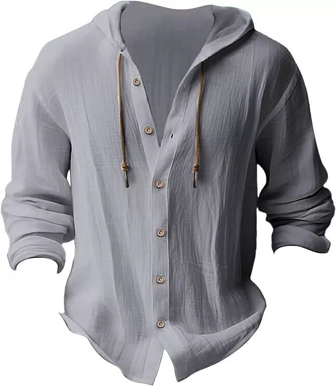 This shirt has a business-casual style element and is made from Linen, which is extremely breathable. The sharp, tailored design of the collar and sleeves with sleek white buttons makes this shirt simple and uncluttered! This shirt goes well with any outfit, which will all be the finishing touch! Whether for outdoor sports, leisure activities or social gatherings, this shirt will keep you elegant and gentlemanly for a long time.