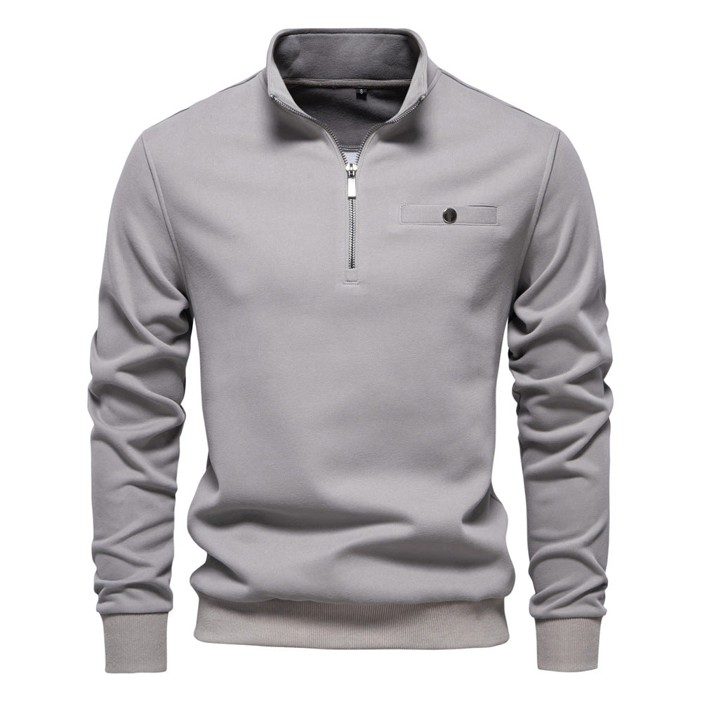 Loookus Men's fashion Pure Color Stand-up Half-zip Long-sleeved Sweatshirt combines casual comfort with a modern textured design, making it the perfect choice for a stylish yet laid-back look. The unique geometric pattern adds a sophisticated touch to the hoodie, ensuring it stands out from the crowd. Available in versatile neutral tones, this hoodie is perfect for casual outings or cozy indoor wear.