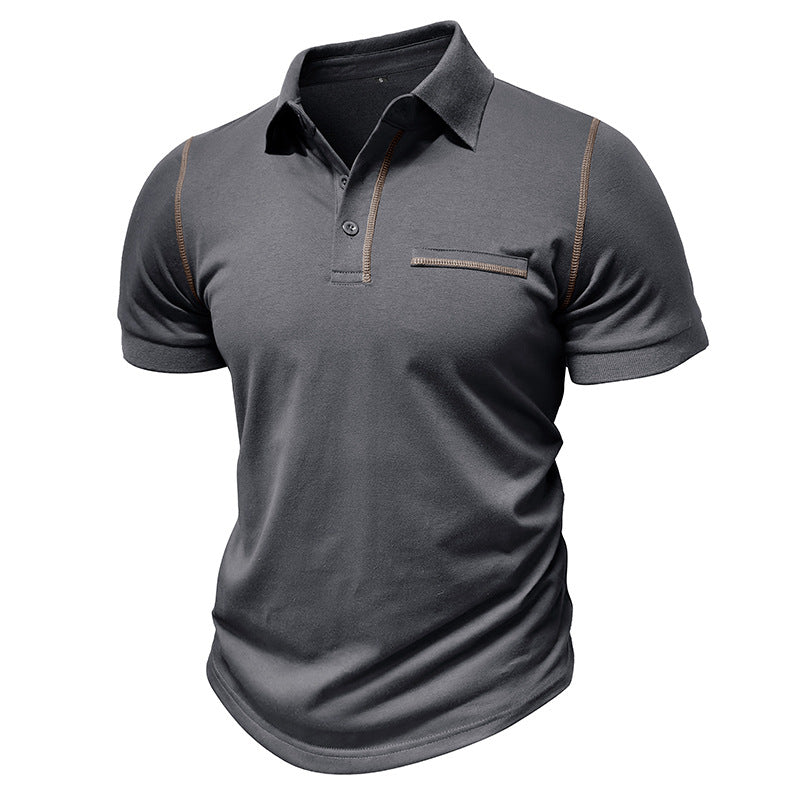 Loookus - Men's short-sleeved Cotton Polo T-shirt with Pocket Line