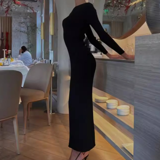 Elevate your wardrobe with this sophisticated slim-fit long-sleeve knitted dress. Crafted with a premium cotton and rabbit wool blend, this dress offers an effortlessly chic and cozy look perfect for the modern woman. Featuring a timeless solid color design, this pull-on pencil skirt silhouette accentuates your curves while ensuring all-day comfort. The elegant off-shoulder neckline and high-waisted cut further enhance its flattering fit. Available in a range of stylish shades, this dress is perfect for both casual and office wear.