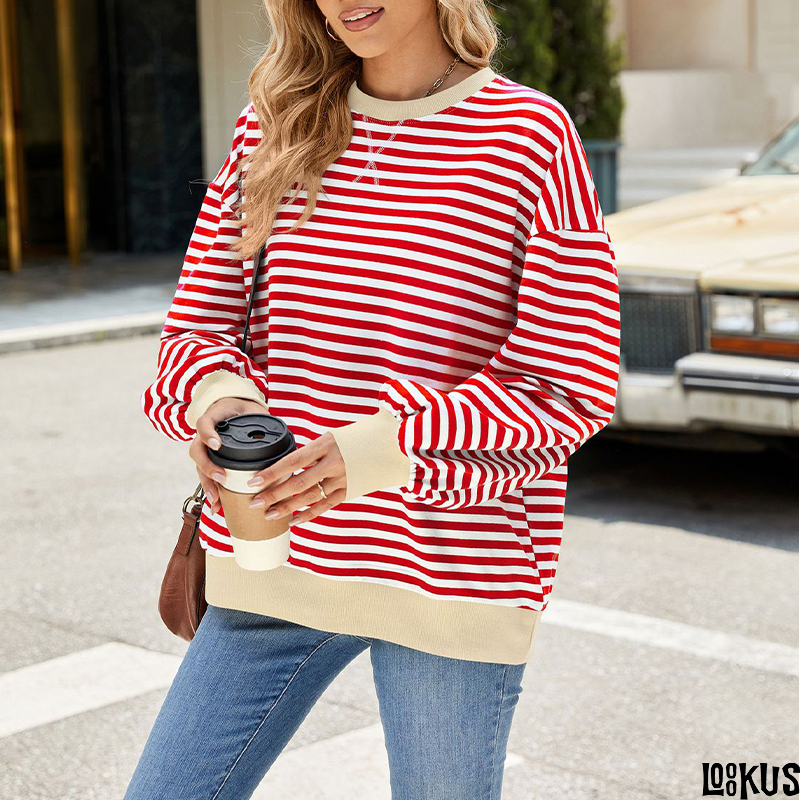 Choose the Striped Casual Sweatshirt to add a touch of fashion and comfort to your everyday wardrobe. For any inquiries or further information, please feel free to contact our customer service at Service@Loookus.com.