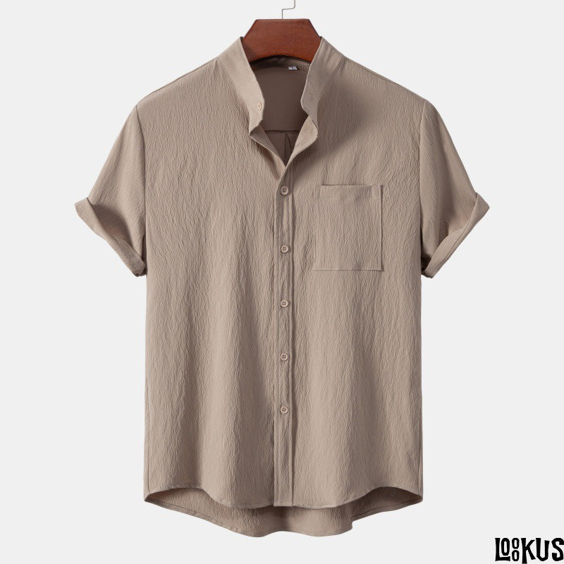 Introducing our stylish men's stand-collar cardigan T-shirt, designed to combine a sophisticated look with casual comfort. This versatile T-shirt is perfect for a refined yet relaxed style, making it a must-have addition to your wardrobe.